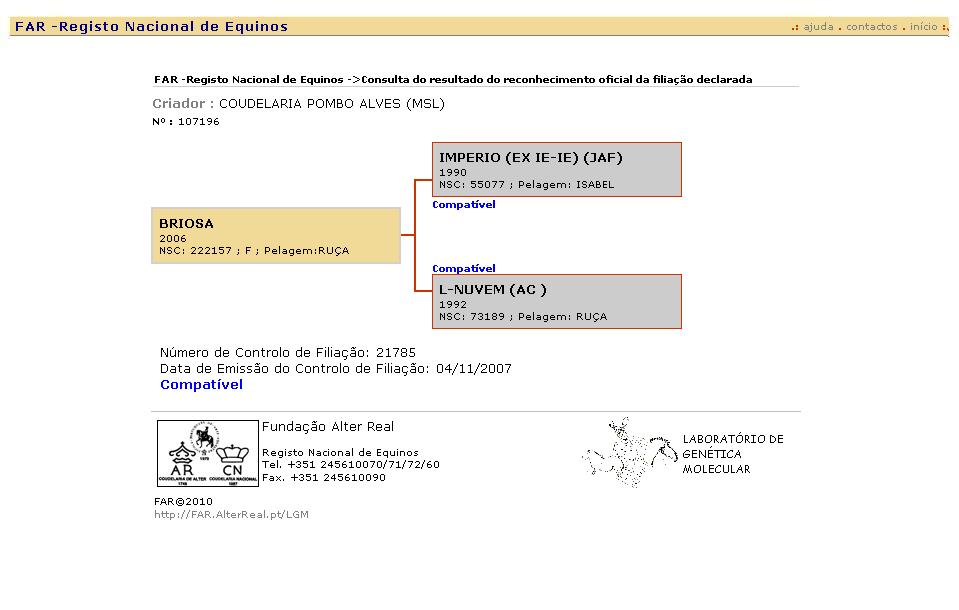Brioso ( M ) . ( falecido ) Oriente x Naja da Cartuxa |
